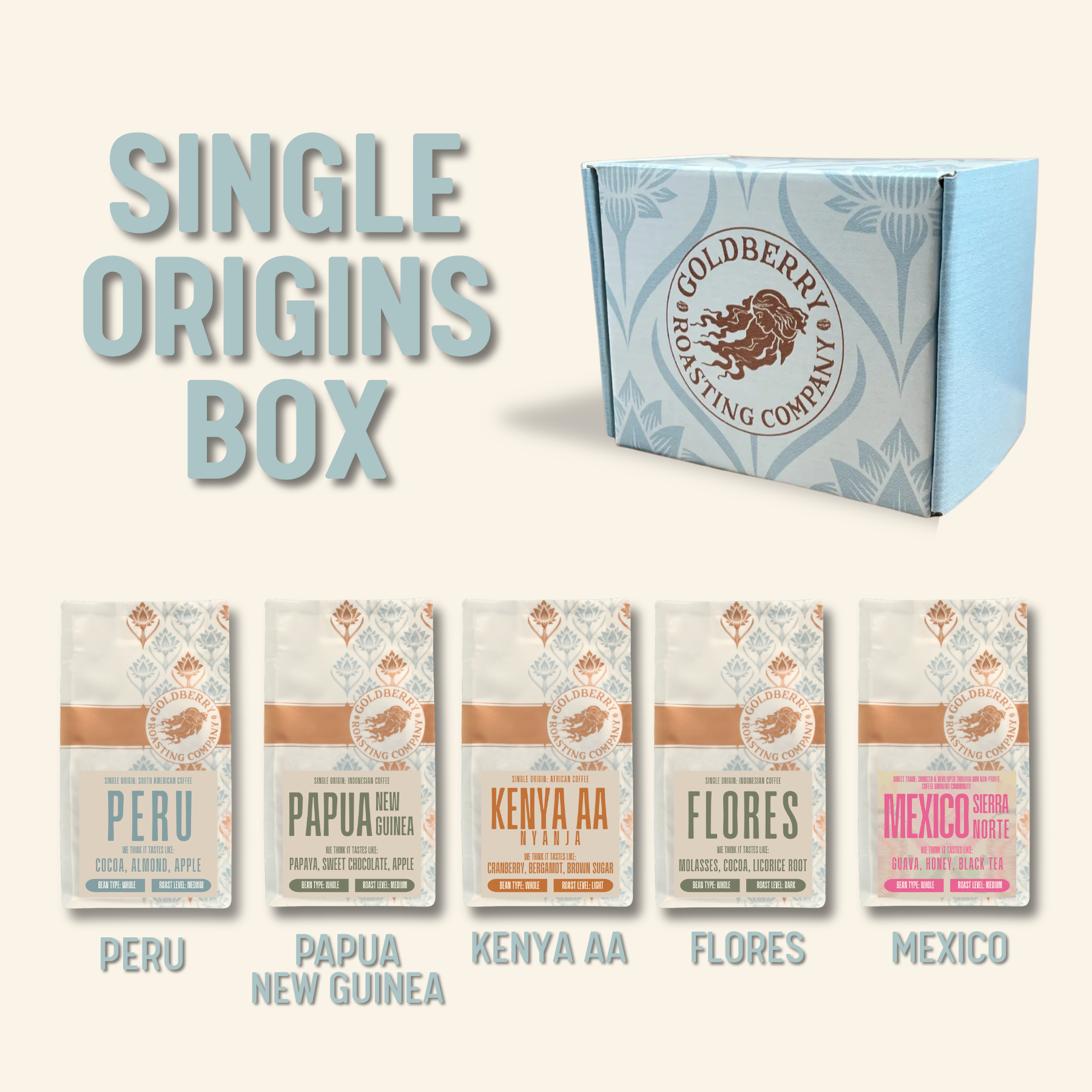 Not sure which coffee to try, or want to get a coffee-loving loved one a gift they'll get excited about? The Goldberry Sampler box is for you!